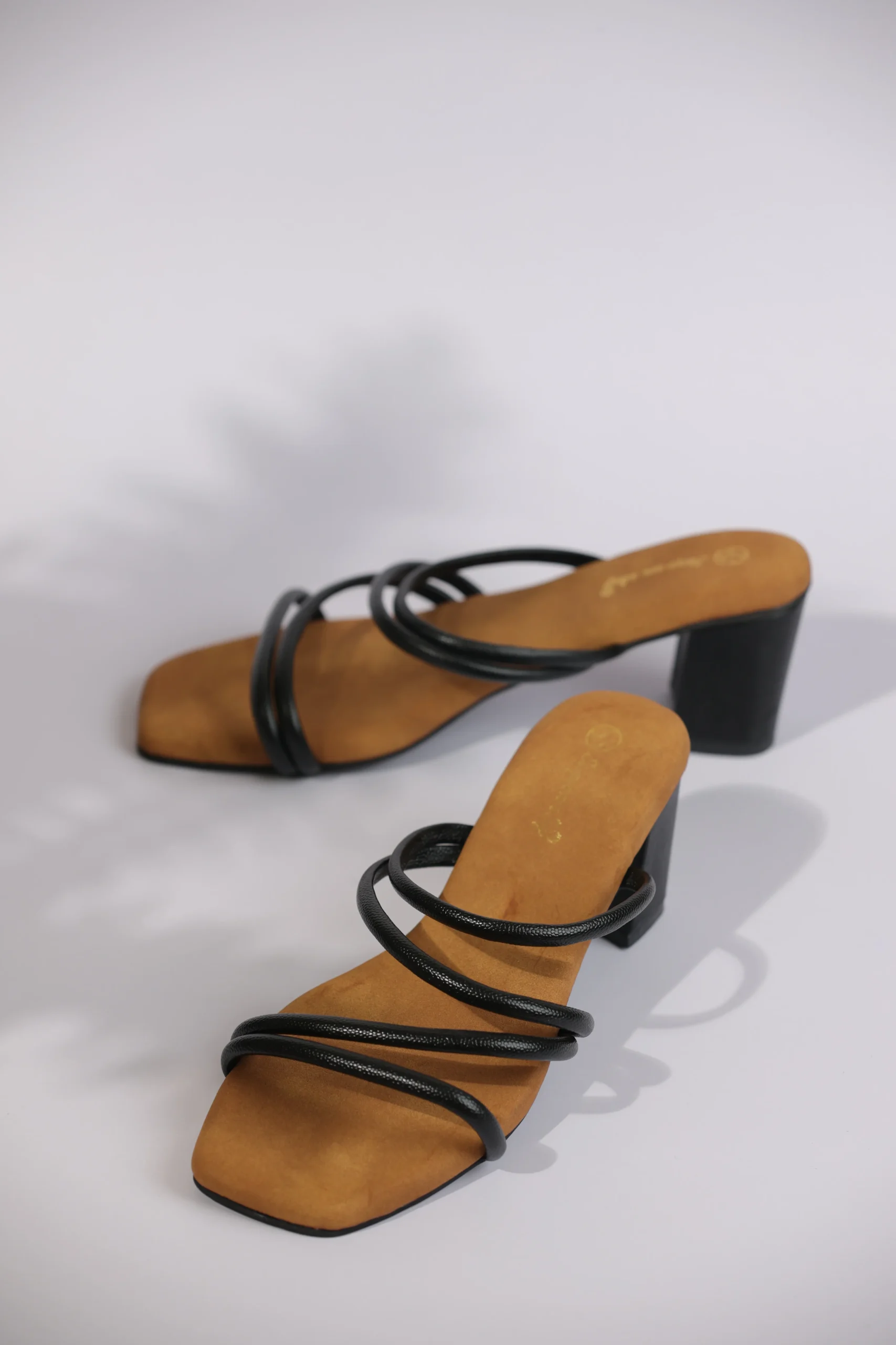Step into effortless elegance with the Luna Twist Strap Heels. Featuring a sleek square-toe design and delicate multi-strap detailing, this pair blends minimal style with modern sophistication. The structured block heel offers comfortable height and steady support, making it perfect for brunch dates, evening outings, or refined everyday wear. A versatile statement piece that elevates any outfit with ease.