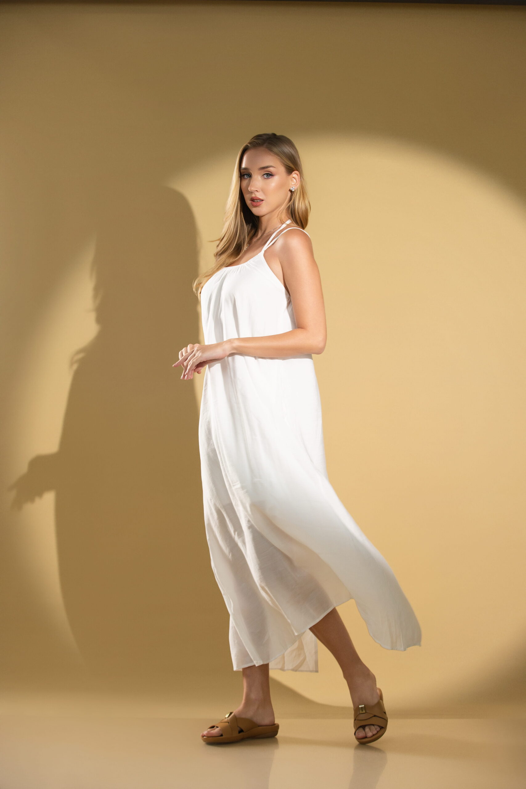 The Serene Flow Maxi Dress is designed for effortless grace and relaxed sophistication. Featuring slim shoulder straps, a softly gathered neckline, and a fluid silhouette, this dress drapes beautifully for an airy, flattering fit. Its lightweight fabric ensures all-day comfort, making it perfect for casual outings, warm-weather days, or relaxed evenings. Style it with flats for an easy daytime look or elevate it with heels for understated elegance.
